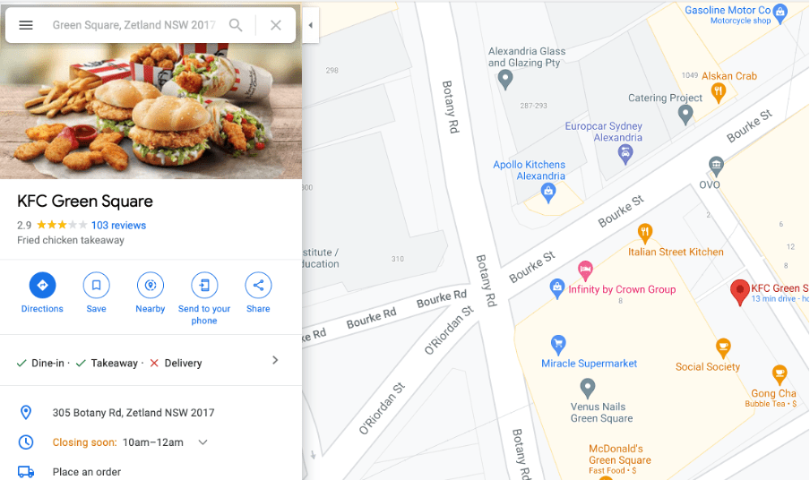 Sadly for Green Square, the Bureau for Chicken Allocation couldn’t quite get this one right. The black and red colour scheme was either going for a hyper modern or a neo fascist vibe, but neither are able to be well borne out by a KFC. It ended up looking and feeling like a cheap imitation of something far trendier than it could possibly be. Combined with punishing electronic music at far too high a volume it was an unfortunate atmosphere and dining experience.